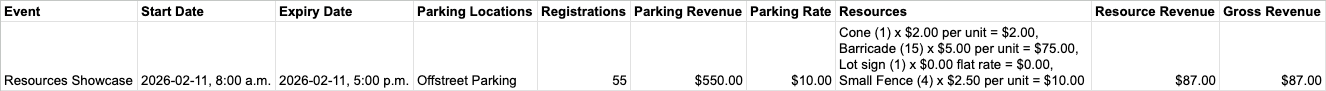 Running event parking takes more than just pavement. While the Event Portal helps your parkers know where to go, Resources help you manage items like signage, barricades, decorations, or anything else your event needs to run a seamless parking experiencing.