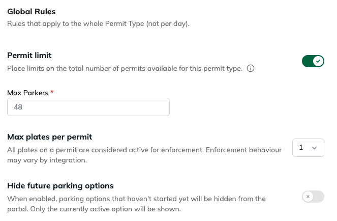 Global rules apply to the entire permit type, across all parking options.