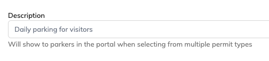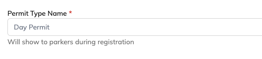 The Permit Type Name is the label that parkers will see when selecting a parking option.