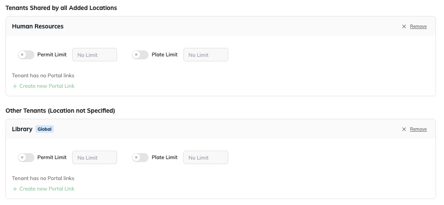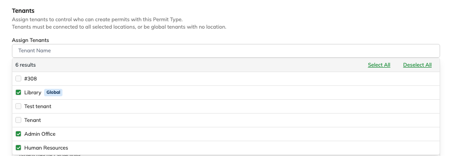 - Through tenant or location lookup links where the permit type is assigned