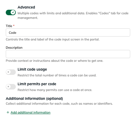 Restrict how many permits can be created using a single code at one time.