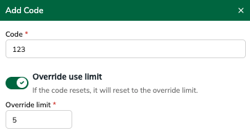 Override the default usage limit for this specific code.