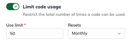 Restrict the total number of times a code can be used.