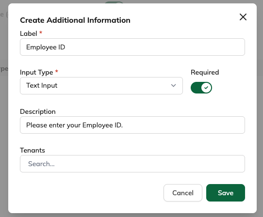 The name of the field shown to parkers - Input Type
